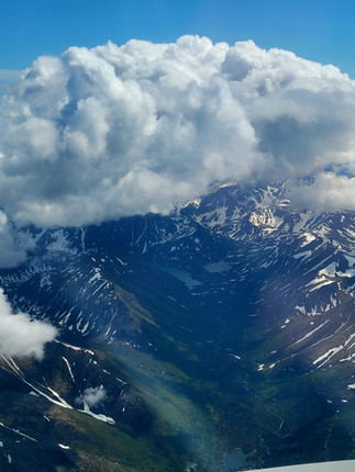 As our aircraft began its initial descent over Alaska at the conclusion of a 6 hour flight, I opened my window shade and was filled with awe at the way the snow-capped mountains peaked through the clouds. The young passenger seated beside me, who couldn’t have been more than 13 or 14 years old, momentarily forgot her fear of flying and let go of the tight grip she had on her grandmother’s hand as she looked out at the mountains in disbelief, also excited about her first trip to Alaska. It was an emotional experience seeing the mountains for the first time, and I have never seen such majesty in my entire life. I could feel the welcoming energy of the mountains, with terrain that looked treacherous and unforgiving, while also gorgeous and pristine at the same time. The view just filled me with love.