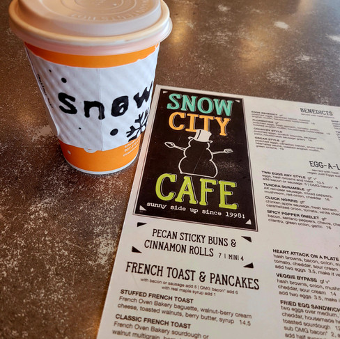 The next morning, I had a full day planned, which began with breakfast at the Snow City Cafe. If you are visiting Anchorage and decide to stop by the Snow City Cafe, I highly recommend their coffee and the stuffed French toast. The vibe was positively cozy and very much had an industrial meets arctic lodge vibe, and by 6:30 A.M., it was already packed with customers waiting to be seated. All of the dishes at the cafe are made from scratch, and I settled on a small mocha, and the classic French toast with a side of their signature berry butter.