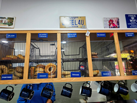 There is an outdoor seating area as well, which looked great for enjoying coffee in warmer weather. Instead of going for my usual mocha, I asked the barista what she recommended, and almost immediately she suggested their Sweet Spice Latte, which was listed on their Christmas Menu. It was a warm blend of espresso, steamed milk, and white chocolate, with cinnamon and sweet spice syrup... and it was heavenly. Being a Christ-centered coffee shop and incorporating faith into their service of the Biloxi community, it's probably safe to say "heavenly" is what they were going for. Everything I ordered was insanely delicious, especially the chocolate chip sea salt cookie, which was also a barista recommendation. I left Finch with a full heart and stomach, wondering how in the world I was going to turn right around and eat a bagel in an hour.