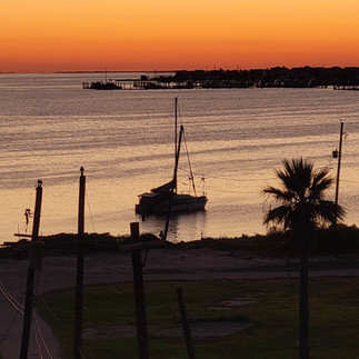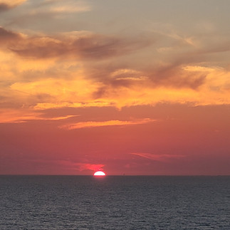 My friend Vicki, who I met through our 50 States Half Marathon group on social media and then later met in person during our weekend in Pennsylvania for the Bird-in-Hand Half Marathon, joined me in Biloxi and we spent the weekend together exploring as much of the gulf coast as we could with the amount of time we had. Vicki pulled up to my hotel just as the above gorgeous sunset was happening. It was so peaceful and quiet, and it was hard to believe this was the same Gulf (of Mexico? America?) that my husband and I sailed from both times in 2022. Below are two Galveston sunset photos, and a photo taken from the Allure of the Seas while underway, for comparison to my above sunset photo in Mississippi. Same beautiful orange sun dipping into the ocean in 2022 and 2025, yet completely different temperaments of the ocean. Also, yes — I did just want to show off my sunset photography. It's my blog, and I can do that.