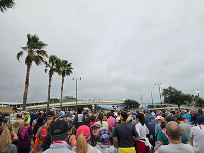 Race morning came early at 4:30 A.M. Shuttle service at Keesler Federal Park to the race start opened up for business at 4:45 A.M. for both the marathon and half marathon. A total of 5,200 runners showed up to celebrate the 10th anniversary of the Mississippi Gulf Coast Marathon events, and the race organizers advised showing up early to the shuttle since they anticipated each bus filling up fast. Shuttle service would end with the last bus departing at 6:10 A.M. with no exceptions, ensuring everyone made it to the staging area on time for a 7:00 A.M. start. To balance being on the safe side, and not setting our alarms for stupid o'clock (anything earlier than 4 A.M. is a hard no for me unless I am catching a flight to an exciting destination), Vicki and I decided to meet up at 5:15 A.M. in front of my hotel and walk over together to Keesler Park.