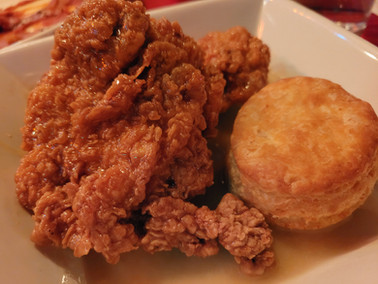 My final excellent culinary experience that concluded my visit was a trip to Salty Sow for dinner with my best friend, and my best friend's best friend, Rison. Salty Sow was dog-friendly, and didn't mind a very well behaved 14-year-old German Shepherd (whom I had not seen in 12 years) joining us. The restaurant is an American gastropub that serves Texan farmhouse-style cuisine, with an impressive presentation for every dish. Every dish was better than the last, and we had an awesome server who made great recommendations. We went all out and ordered fried green beans, loaded duck fat fries, honey rosemary fried chicken, and the dessert that was the special that evening — coconut tres leches cake.